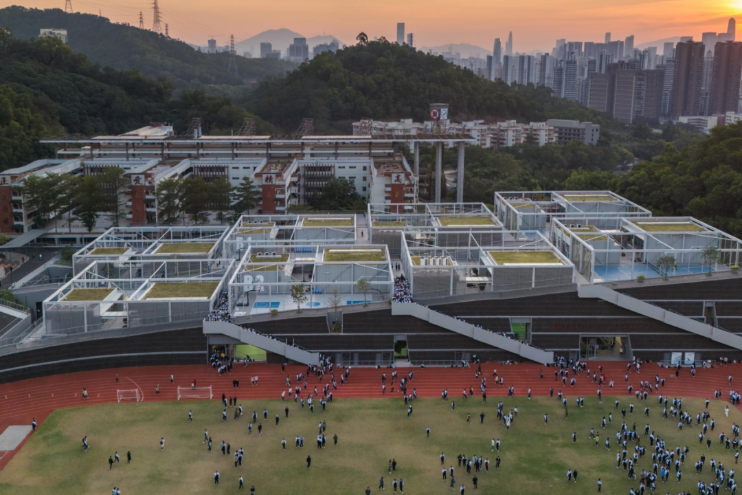 何健翔聚焦紅嶺實(shí)驗(yàn)小學(xué)、紅嶺高中藝體中心與深圳美術(shù)學(xué)校三個(gè)項(xiàng)目,系統(tǒng)展示了高密度校園的解題思路。紅嶺實(shí)驗(yàn)小學(xué)通過“雙復(fù)形”內(nèi)部庭院,在有限密度中編織出充滿活力的兒童社群空間;紅嶺高中藝體中心以“空間織造”策略回應(yīng)原始山體地形,實(shí)現(xiàn)建筑與自然肌理的有機(jī)縫合;深圳美術(shù)學(xué)校則以大膽的架空操場(chǎng)釋放地面空間,重構(gòu)了校園與城市的界面關(guān)系,為高密度城市中的校園建設(shè)提供了兼具在地性與前瞻性的解決方案。